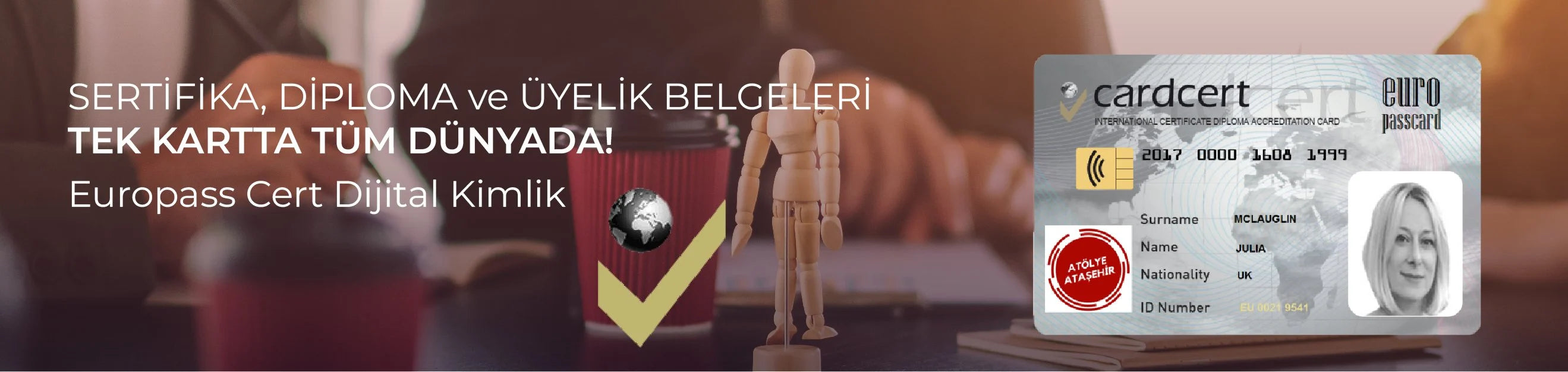 Sayın katılımcılarımız, Atölye Ataşehir olarak eğitimlerimizdeki standardı yükseltmek kapsamında Eğitim ve hizmet kalitesi; ISO 9001 Kalite Yönetim Sistemi standardında uluslararası tescillenmiş olup aynı zamanda “Cardcert Management Systems” standarda ilişkin genel şartlara uyumluluğundan dolayı EuroPass CardCert tarafından belgelendirilmiştir.