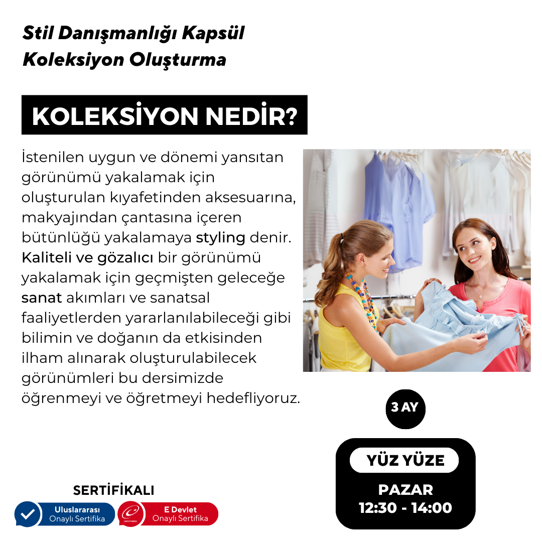Since 1988, she has supported her fashion education, which she received during her university years, with international fashion fairs and shows, and fashion workshops. Color Analysis Expertise, Pattern Making and Pattern Knowledge, Retail Sales Methods and Merchandising are some of the trainings she has received.